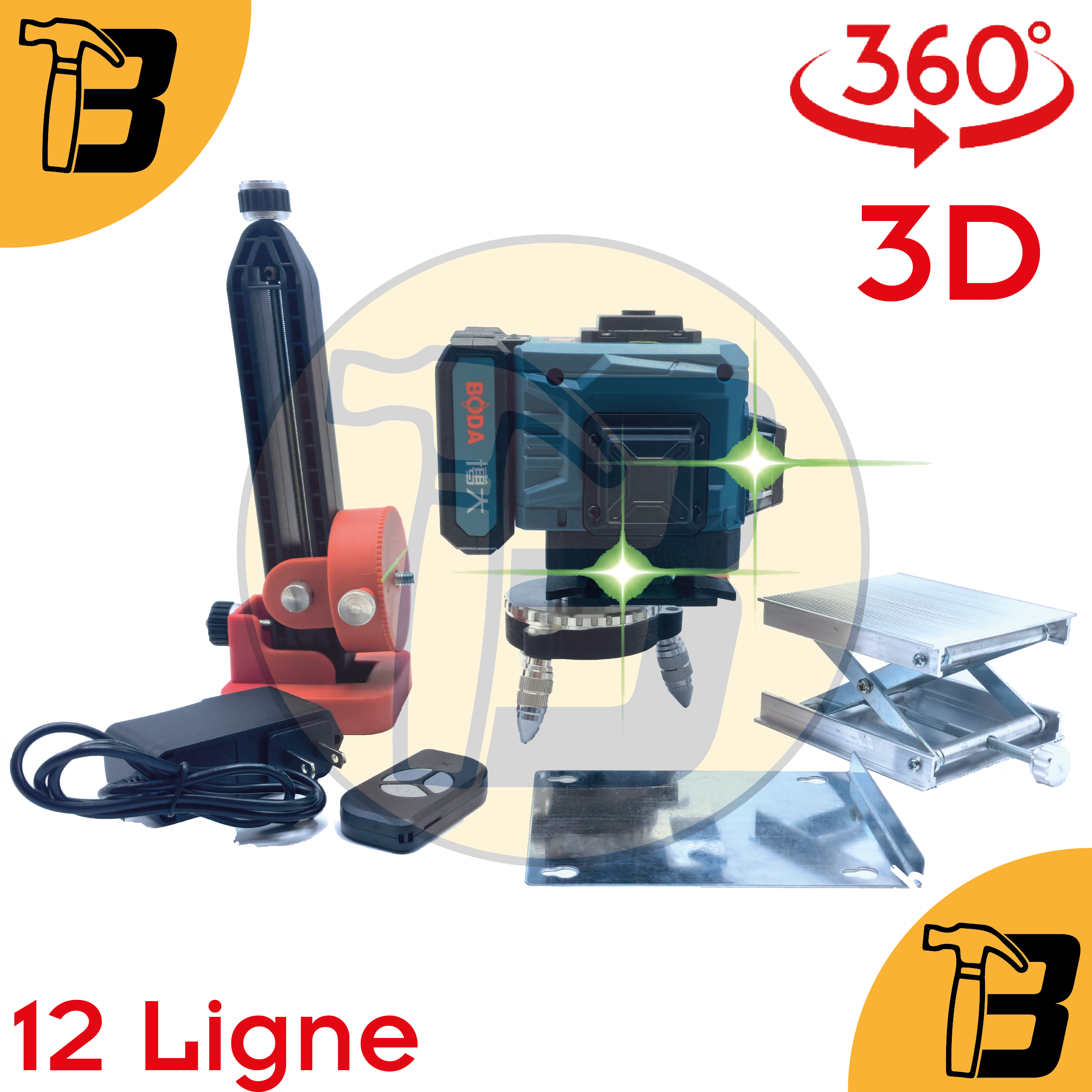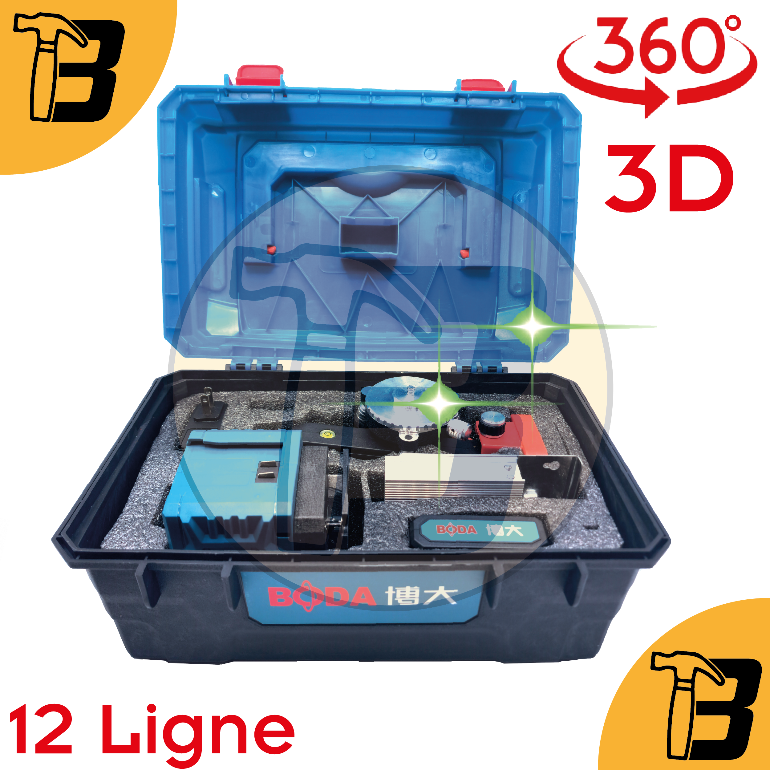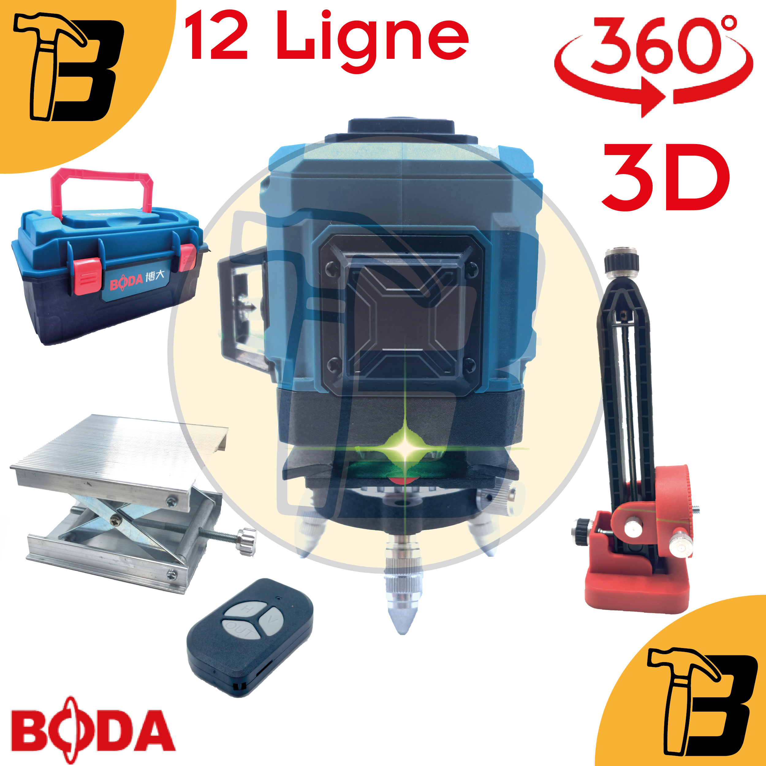 Niveau Laser 3D auto-nivellement 360° 12 lignes batterie Lithium-ion Laser rotatif BODA L9-12